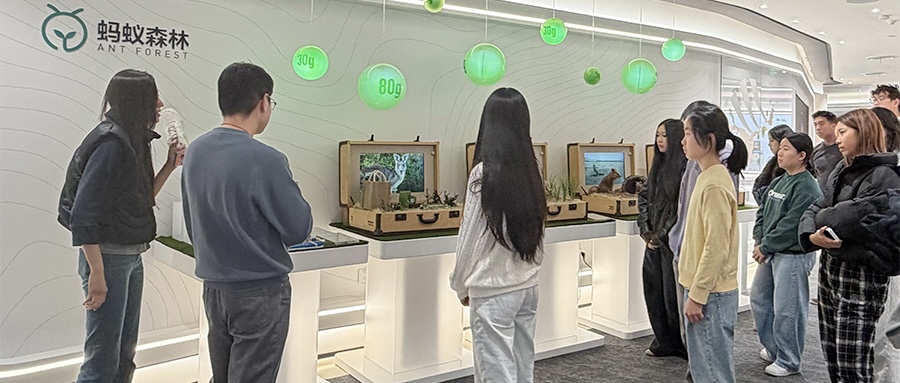 The visit began with a guided tour of Ant Group’s showroom, where students learned about the company’s technological milestones, business portfolio, and environmental, social, and governance initiatives. Along the way, they explored how products like Alipay help expand financial inclusion, improve access to healthcare, and support environmental protection. Freshman Zhi C. was especially struck by the scale of collaboration behind the technology, noting that the tour revealed “the technology behind Alipay and how different regions collaborate to create a system that makes digital payment accessible for everyone.”